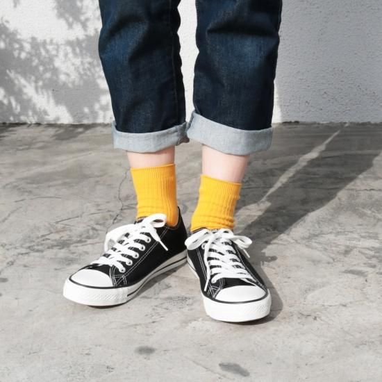 コットンのシンプルなリブ編みソックスなので、コーディネートしやすくオールシーズン履けるのも嬉しいポイント。