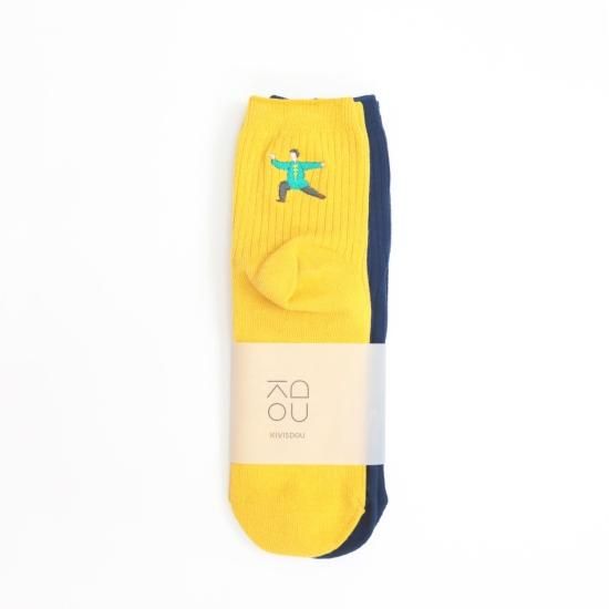 セット内容:ネイビー1足、イエロー1足 2足がロゴ入り帯巻き