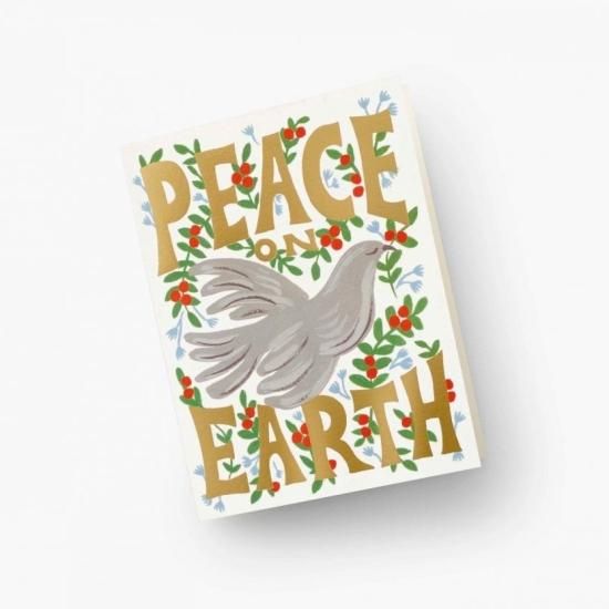カード表面のメッセージ「PEACE ON EARTH」は、金箔押しです。